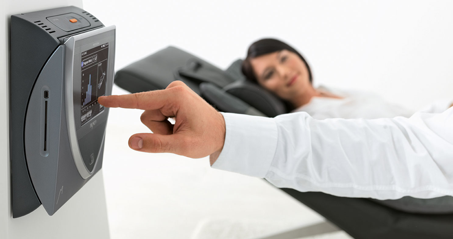 Nagrodzony licznymi wyróżnieniami wyświetlacz dotykowy umożliwia łatwą i intuicyjną obsługę urządzenia. Wyświetlacz jest wyjątkowo przejrzysty, a jego układ nie wymaga objaśnień. Wszystkie poziomy terapii oraz programy można wygodnie uruchamiać poprzez naciśnięcie palcem.